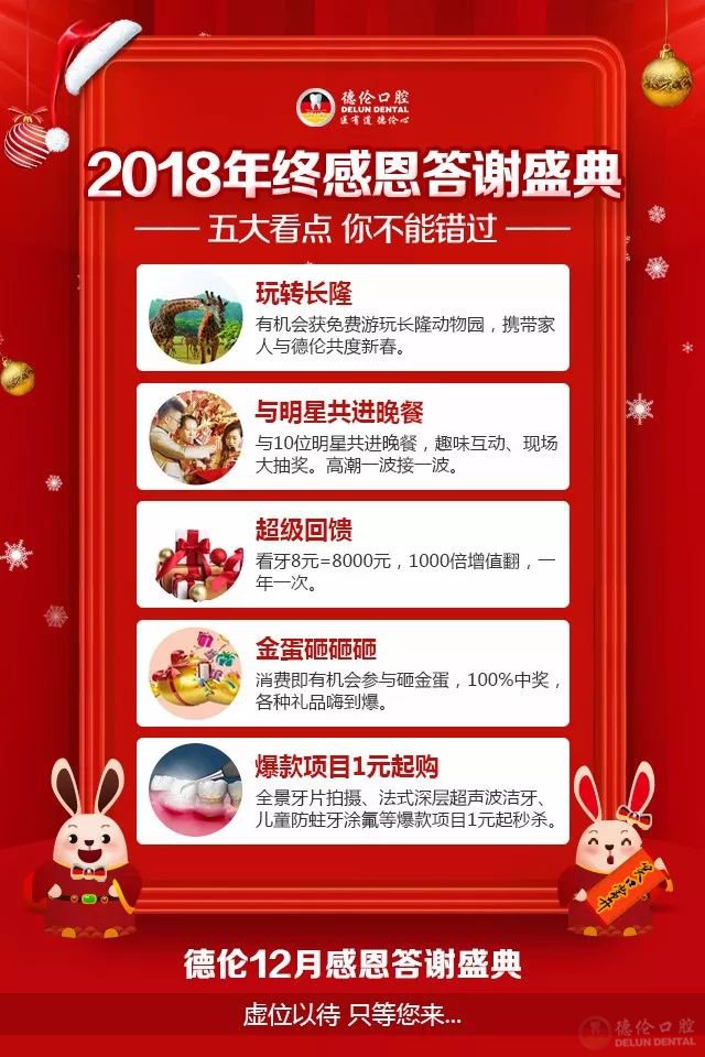 12月28日,德伦口腔诚邀新老顾客参加“德伦口腔2018年终感恩答谢盛典”。这场精彩的答谢盛典会带给我们怎样的惊喜?让我们拭目以待!