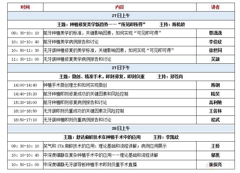届时,全国口腔种植界大师巨擘将齐聚一堂,就前牙区美学种植和即刻修复、高龄老人无牙颌美学种植和即刻负重,复杂种植手术中应用中深度镇静等临床种植技术的选择和评估等重要课题展开探讨,帮助市民实现舒适、微创、准确、快捷、美观地完成种植修复。本次大会内容也会列入 “国家级医学继续教育项目(Ⅰ类10学分)”积分项目。