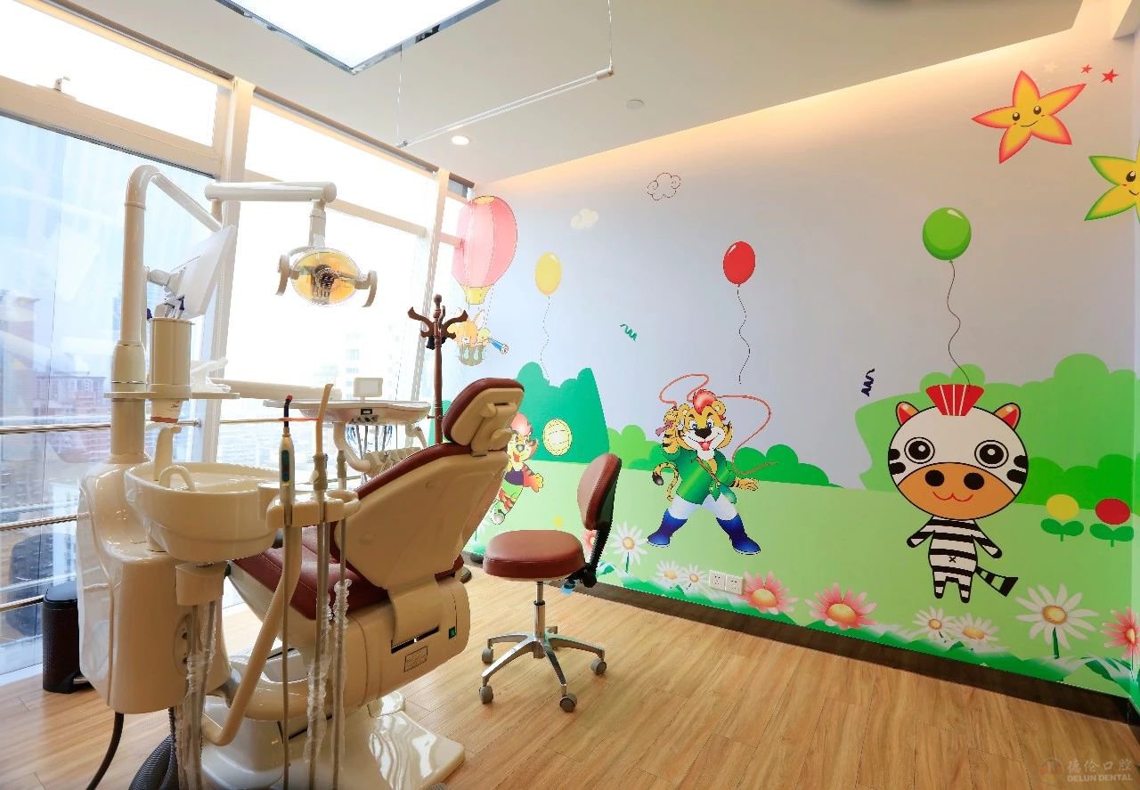 儿童牙科诊疗室,萌萌的动画卡通人物与暖色系灯光,让孩子更好的放松配合医生