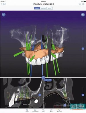徐教授称,数字化种植牙技术就没有这样的烦恼,快捷、微创、可靠是它的优势。它通过术前获取的精细口腔信息,在计算机上建成3D数字模型,接着,种植系统软件将血管、神经和上颌窦等植体不能触碰的地方清晰呈现出来,准确判断全口牙床位置和牙槽骨深度、厚度及角度,设计出整套种植方案,并经过计算机反复进行模拟,以获得较好的种植方案。手术时是按照手术导板上的孔位进行种植,需要在哪个位置植入,种植体的长度、直径、角度等都可以确定,不需要临时评估,更加精细和合理,有时甚至不用切开皮瓣,病人损伤更小。