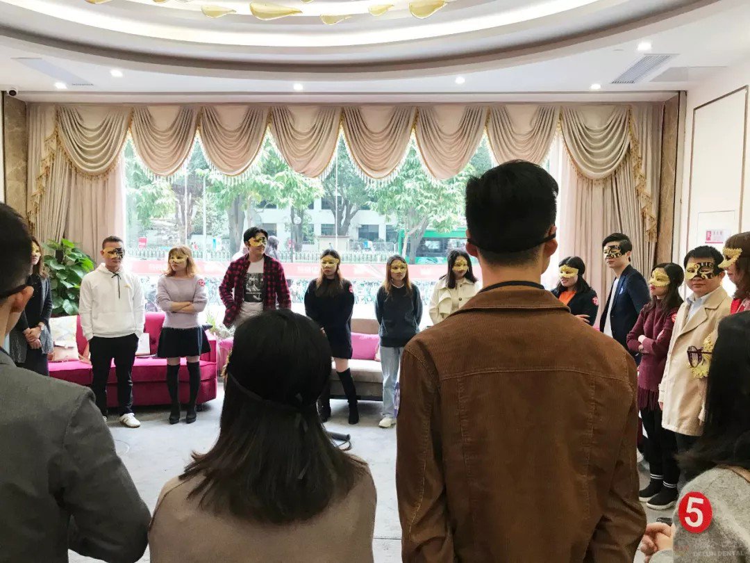 活动现场气氛热烈,欢声笑语不断。活动开始时,主持人要求所有人都带上面具,首先通过一系列轻松有趣的互动游戏,放松了心情,打开了心扉,拉近了距离,大家建立了初步的了解,为后续更深入地交流互动建立了良好的感情基础。活动安排了两个游戏: