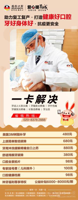 为了助力复工复产,打造健康好口腔,德伦口腔在行动。4月1日期,德伦口腔推出爱牙公益活动--口腔急症治疗套餐,包含补牙、拔智齿、拔残根、牙周冲洗上药、数字化舒适舒适种牙福利包等八大常见口腔诊疗项目,一卡为市民解决牙齿上火发炎痛、牙髓发炎疼痛、牙外伤痛、牙龈发炎疼痛、长智齿疼痛、牙出血等口腔急症问题。