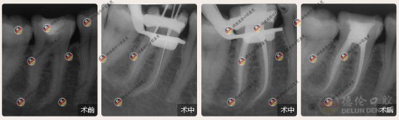 经典案例:德伦口腔为26岁的女生急性牙髓炎(左下烂牙近一周自发性、阵发性疼痛)患者,进行了显微根管治疗。填充严密、各根管均恰填,高质量地完成了弯曲根管和S形根管的治疗。