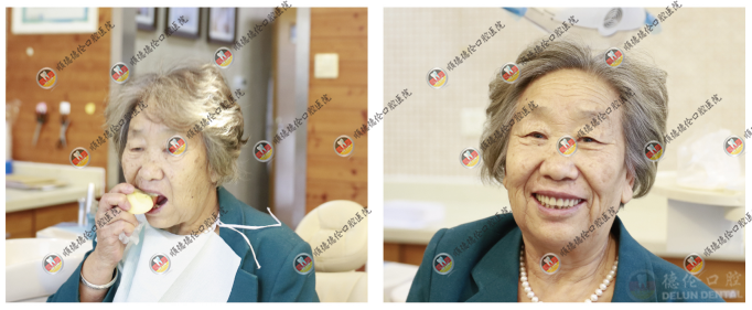 经典案例:德伦口腔种植患者李阿姨,平时吃饭就靠门牙墩儿(残根)慢慢咀嚼,严重的时候馒头都要靠汤汁浸泡才能咬得动。在为李阿姨进行了全面的口腔检查后,德伦口腔种植专家为其量身定制了专业的种植方案。为李阿姨拔除了残根,通过SMN数字化舒眠舒适种牙技术进行种植。只需植入五颗种植体就可以承受一整排牙齿的咀嚼力,整个过程只用了46分钟。完成种牙之后的李阿姨不仅看起来年轻了好几岁,使用效果更是媲美真牙!