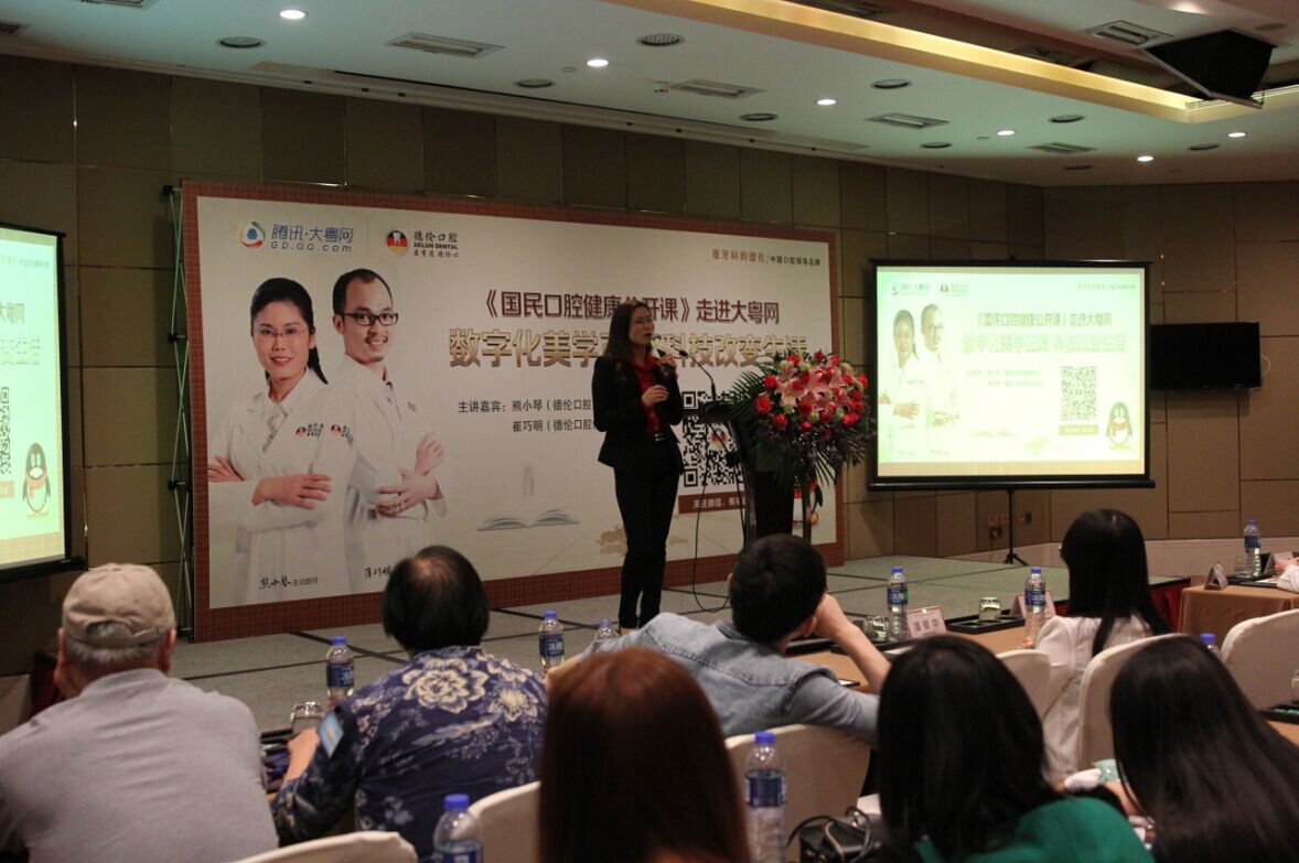 2015年3月29日,由腾讯大粤网主办、德伦口腔协办的《国民口腔健康公开课》第二场“数字化美学正畸,科技改变生活”在希尔顿酒店成功举办,现场吸引了150位大粤网友到场听课,德伦口腔熊小琴医生(隐形矫正认证医师)、崔巧明医生(修复科主任)进行了课题分享。