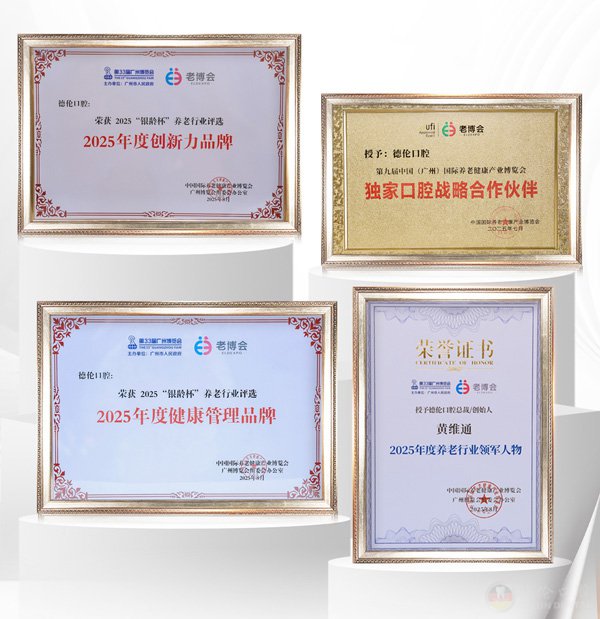 8月23日,德伦口腔在第九届广州老博会上斩获三项重磅荣誉——独家口腔战略合作伙伴、年度健康管理品牌、年度创新力品牌!德伦口腔董事长黄维通先生荣膺“养老行业领军人物”称号。德伦口腔将继续秉承“专业、创新、温度”的理念,深耕口腔医学领域,助力长者乐享口福!