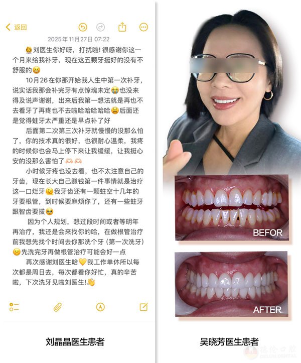 齐富路院区:刘潇博医生为配合顾客时间,主动延长服务,深夜加班至十点,耐心守候、尽心治疗,以实际行动诠释了德伦口腔“以患者为中心”的服务理念。
